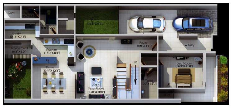 Built on 7.25 acres of grassland, Crystal Cove is planned down to the tee. The enclave is designed around by 5 avenues, each named after great explorers! There are 4 Residential Blocks, with Houses on Plots of about 30x67 (2010 Sq Ft) and facing either West or East. Each avenue ends in a cul-de-sac, making the drive private and predictable.