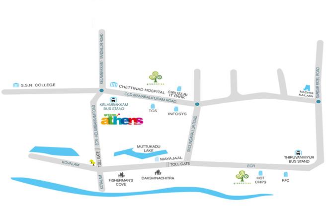 Greenn Athens is a luxury villa project inspired by contemporary Greek architecture. The ground level parking space is concealed by elevated Bridgewalks - that function as traffic-free streets - and run throughout the project. Located close to the Muttukadu Lake, Greenn Athens allows the adventurous to unwind with water sports, while others can enjoy the calm surroundings.