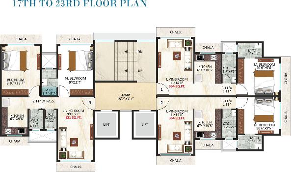 The approximate size of a 2 BHK apartment here is 554 Sq.ft.