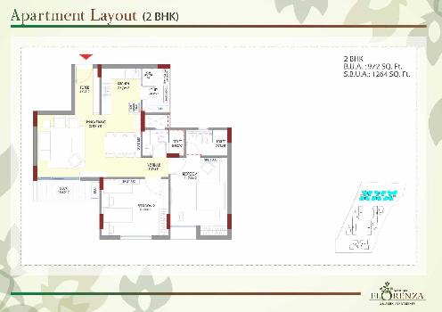 The approximate size of a 2 BHK apartment here is 1264 Sq.ft.