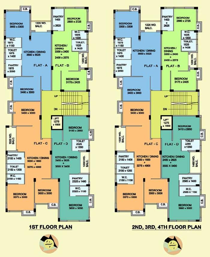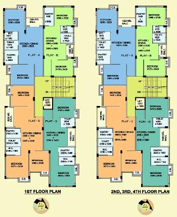 The approximate size of a 2 BHK apartment here are 725 Sq.ft., 800 Sq.ft., 900 Sq.ft.
