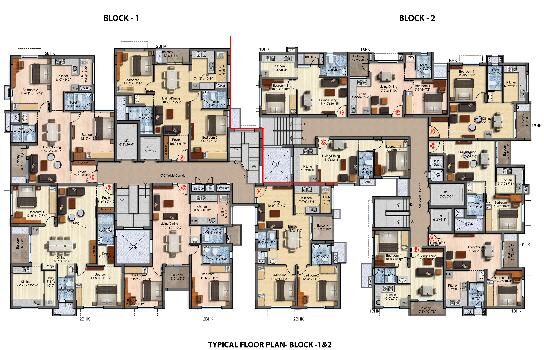 The approximate size of a 3 BHK apartment here are 1500 Sq.ft., 1569 Sq.ft.