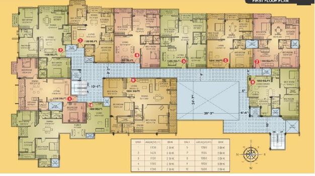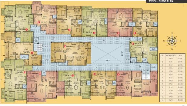 The approximate size of a 3 BHK apartment here are 1525 Sq.ft., 1635 Sq.ft.