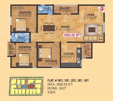 | 3 BHK+2T | 1650 Sq.ft. (Built Up) |
