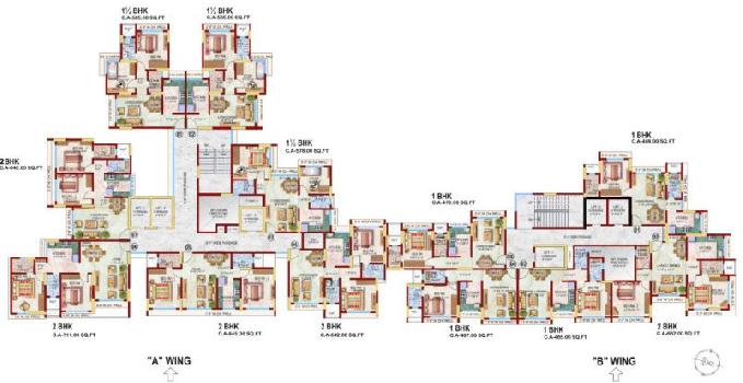 The approximate size of a 1 BHK apartment here are 730 Sq.ft., 900 Sq.ft.