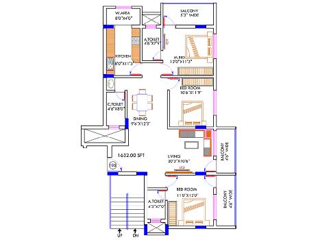 3 BHK+3T | 1632 Sq.ft. (Built Up) |