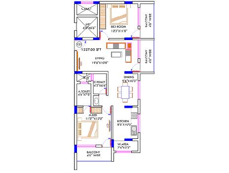 2 BHK+2T | 1227 Sq.ft. (Built Up) |