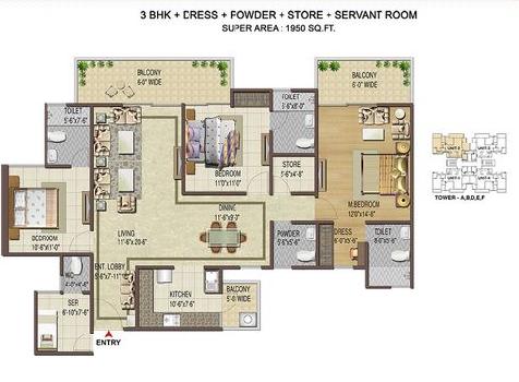3 BHK+3T | 1950 Sq.ft. (Built Up) |