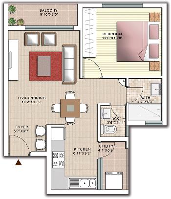 1 BHK+1T | 854 Sq.ft. (Built Up) |