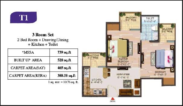 2 BHK | 739 Sq.ft. (Built Up) |