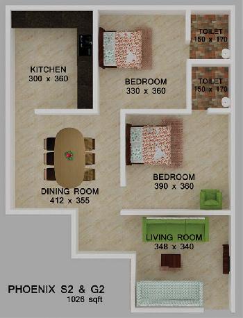 2 BHK+2T | 1026 Sq.ft. (Built Up) |