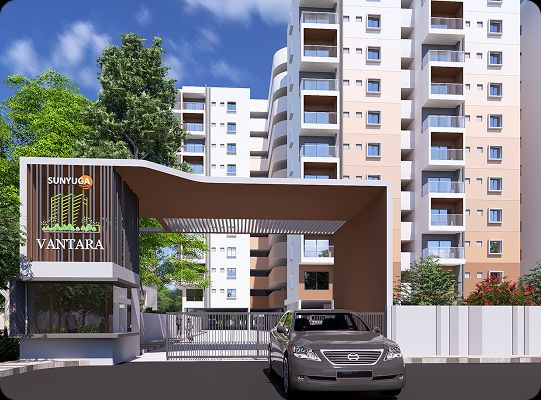 Sunyuga Vantara is a premium residential community in Kompally, spread across 6.5 acres with 575 well-designed 2 & 3 BHK units. With Cellar and Stilt parking, modern amenities, and serene surroundings next to a 5,000-hectare reserve forest, Vantara blends urban comfort with natural living.