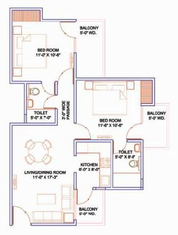 2 BHK | 1005 Sq.ft. (Built Up) |