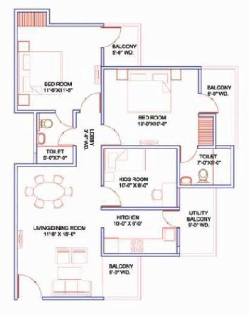 3 BHK | 1680 Sq.ft. (Built Up) |