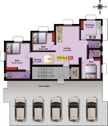 3 BHK+3T | 1233 Sq.ft. (Built Up) |