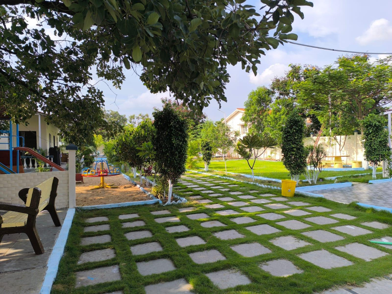 2 Cottages of each 1BHK + Watchman Room + Parking Area + 5000sft Lawn Area + Outdoor sitting + Music box with mic, utensils, gas stove, barbeque stand, beds, almira, majlis sofa, outdoor chairs, cricket kit, shuttle rackets, chess, carrom board etc + 8 x 20 Swimming pool + Bonfire + Plantation + Kids Play Area