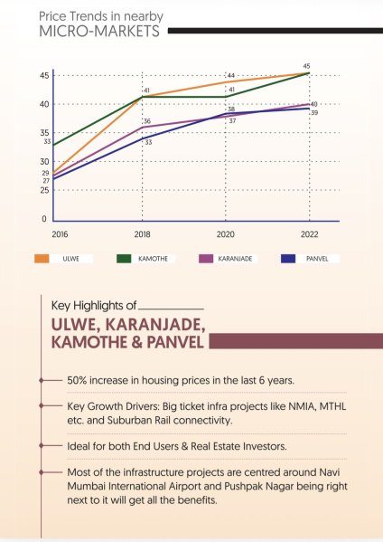 2. Connectivity: The area is well-connected to major highways like the Mumbai-Pune Expressway and the Sion-Panvel Highway. Proposed metro stations nearby will further enhance connectivity within Navi Mumbai and other parts of Mumbai.