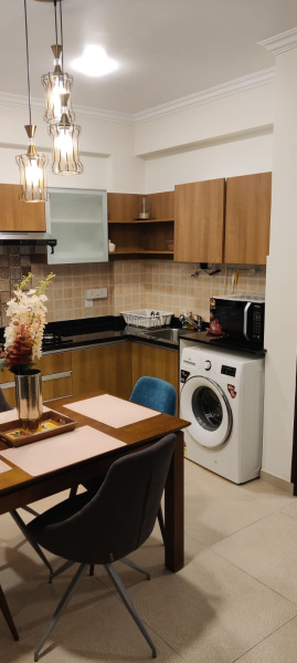 Furnished with sofa set, double bed with mattress, wardrobe, kitchen cabinets, chimney etc.