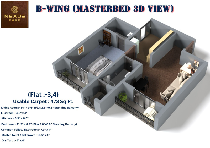 | 1.0 BHK+2T | 709 Sq.ft. (Built Up) | 473 Sq.ft. (Carpet) |