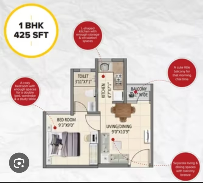 | 1.0 BHK | 469 Sq.ft. (Built Up) |