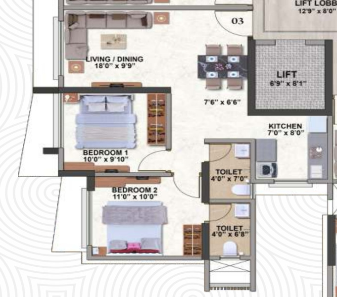 | 2.0 BHK+2T | 750 Sq.ft. (Built Up) |