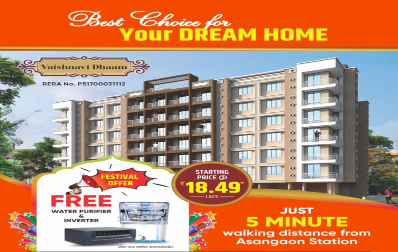 Vaishnavi Dham Complex is a project by Vaishnavi Builders And Developers in Thane. It is a Under Construction project. Vaishnavi Dham Complex offers some of the most conveniently designed Apartment. Located in Asangaon, it is a residential project. The project is spread over 0.91 Acres . It has 102 units. There are 3 buildings in this project. Vaishnavi Dham Complex offers some of the most exclusive 1 RK, 1 BHK, 2 BHK. As per the area plan, units are in the size range of 256.0 - 582.0 sq.ft.. The address of Vaishnavi Dham Complex is Asangaon. ...More