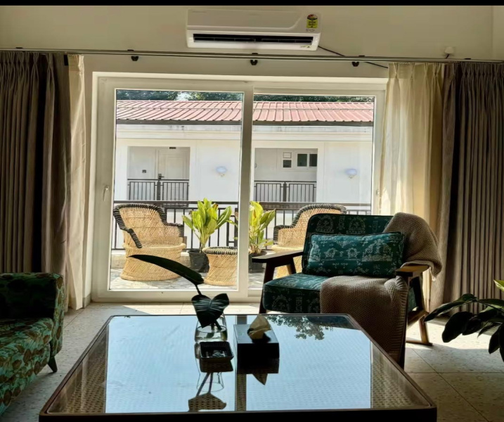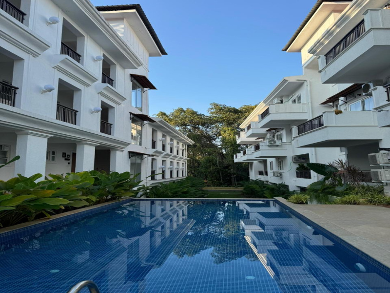 Location: Siolim, Goa\r\nFloor: 3rd Floor\r\n\r\nThis well-designed 1-bedroom apartment features a sloped ceiling reaching up to 14 ft, enhancing the sense of space and light throughout. The living area opens to a private balcony offering picturesque views of the landscaped pool and the lush green hills of Siolim.\r\n\r\nThe open-plan living and dining area includes a fully equipped kitchen tucked neatly into the corner. The bedroom comes with an attached bathroom for added convenience.\r\n\r\nThe interiors combine rustic charm with modern luxury, making this property an ideal choice for a holiday home or investment.\r\n\r\nKey Features:\r\n 1 Bedroom with attached bath\r\n Open-plan living and dining area\r\n Fully equipped kitchen\r\n Balcony with pool and hill views\r\n Sloped ceiling up to 14 ft\r\n Located in a well-maintained complex with landscaped surroundings