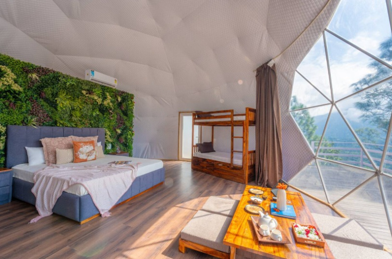 Unique dome structures offering 360-degree mountain vistas, eco-friendly design, and exceptional rental appeal for the growing glamping market.