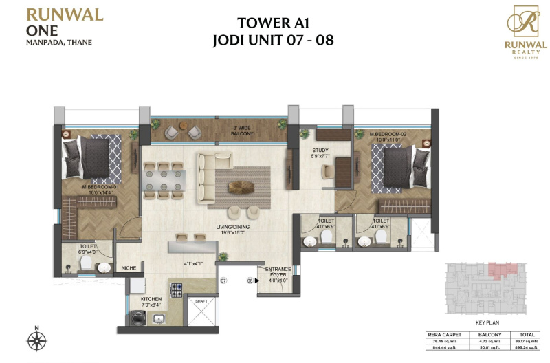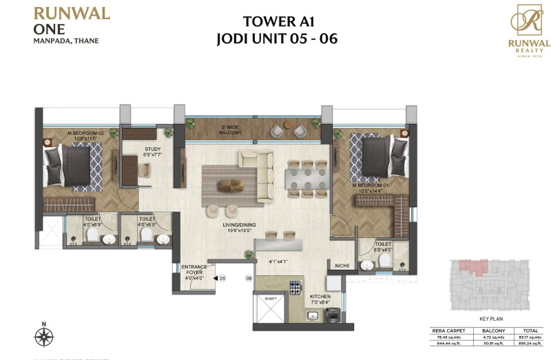 | 3.0 BHK | 962 Sq.ft. (Carpet) |