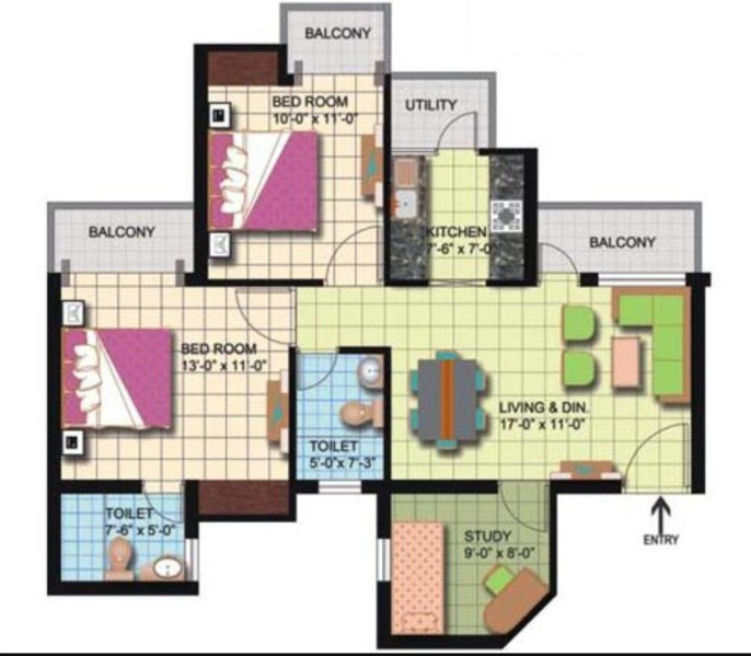 | 3.0 BHK+3T | 1600 Sq.ft. (Built Up) | 1700 Sq.ft. (Carpet) |