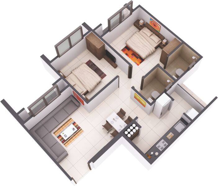| 1.0 BHK+1T | 714 Sq.ft. (Built Up) |