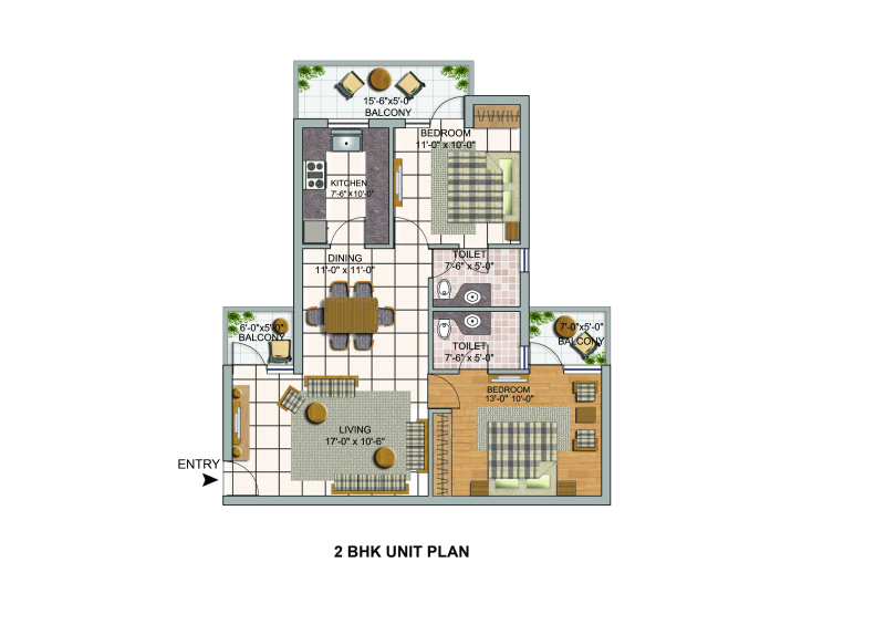 2.0 BHK | 1150 Sq.ft. (Built Up) |