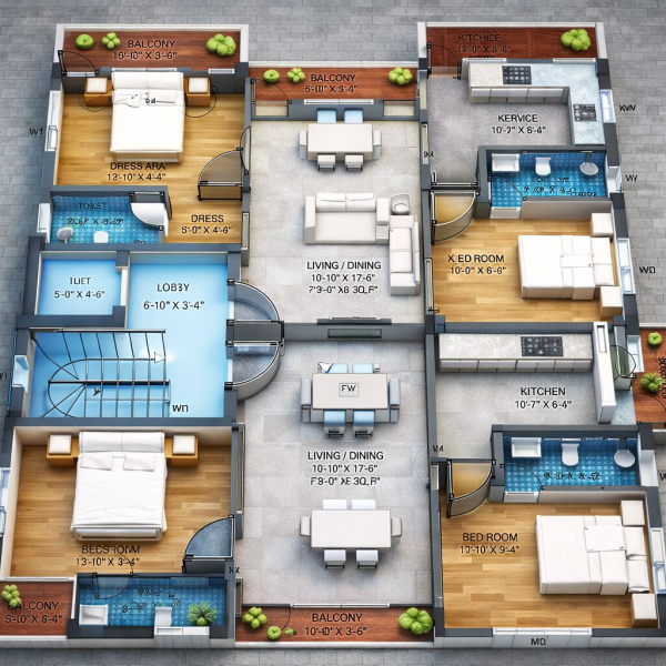 Total Size: 968 Sq.ft