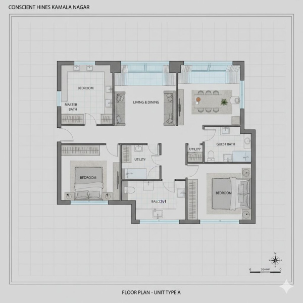 Flats / Apartments is available for sale in Kamla Nagar, Delhi only in Rs. 3 Cr.. This flat for sale has a prime location. These premium furnished 2 & 3 BHK apartments spell quality and comfort at a competitive price under Rs. 3 Cr.. Family-friendly location with close proximity to schools, hospitals, and ATMs. Your own world of indulgences is just within your reach. The happiness of your life has arrived in Kamla Nagar, Delhi. Conscient Hines Kamala Nagar, a perfect address in the capital city that reflects lifestyle & pool of opportunities at one place.