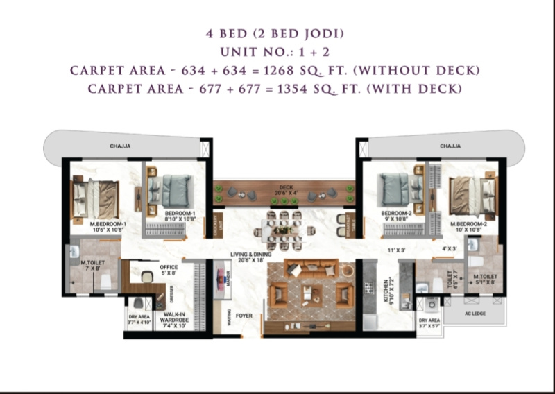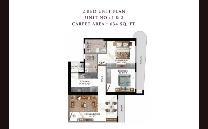| 2.0 BHK+2T | 1029 Sq.ft. (Super) |