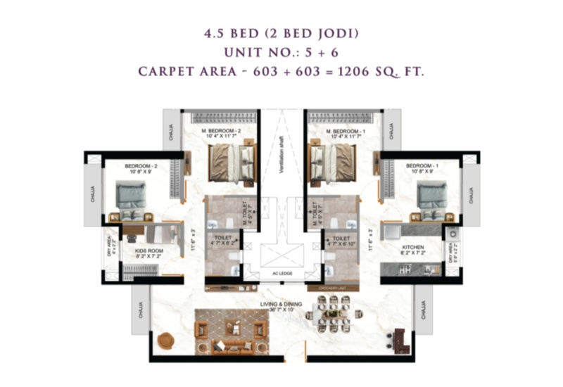 | 2.0 BHK+2T | 1117 Sq.ft. (Super) |