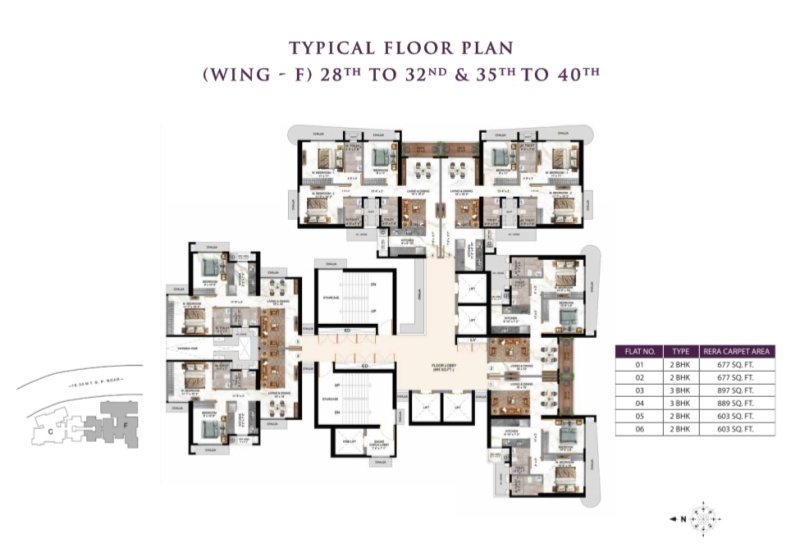 This project constitutes 6 towers with elegant 432 units which are under construction. Tower 28 floor plan includes well designed 1 BHK and 2 BHK flats.