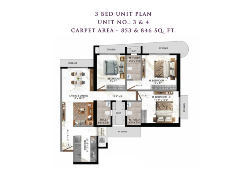 | 3.0 BHK+3T | 1407 Sq.ft. (Super) |