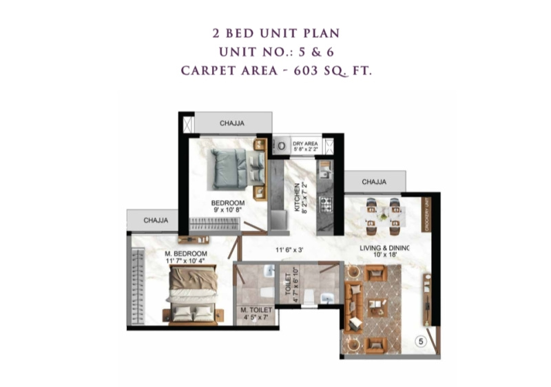 | 2.0 BHK+2T | 1140 Sq.ft. (Super) |