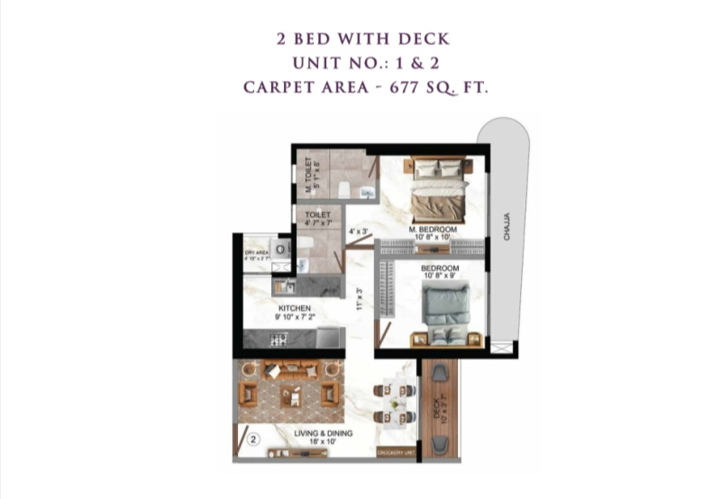 | 2.0 BHK+2T | 1029 Sq.ft. (Super) |