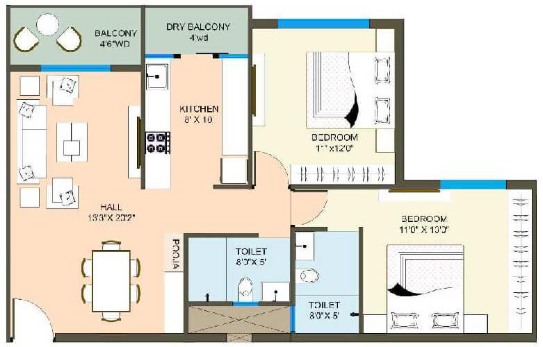 | 2.0 BHK | 1150 Sq.ft. (Built Up) |