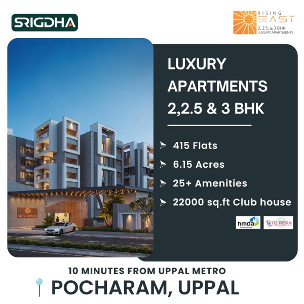 Rising East is located in one of Hyderabad’s Most exciting neighbourhoods, strategically located in Pocharam- East IT corridor, of the Warangal – Hyderabad Highway. The local promises fast-paced development activity for it allows quick access to Corporate Corridors, MNCs with full of Employment* alike. We believe our Eco-conscious endeavor will benefit immensely from your patronage.