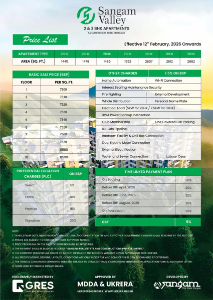 Sangam Valley – Where Modern Living Meets Natural SerenityDiscover the epitome of luxurious living at Sangam Valley, our RERA and MDDA approved residential project situated on the picturesque Sahastradhara Road in Dehradun. With 160 elegantly designed 2 and 3 BHK apartments starting at just INR 75 Lakhs, Sangam Valley offers a perfect blend of modern amenities, natural beauty, and prime location.Sangam Valley is designed to provide residents with a harmonious and contemporary lifestyle. Our project emphasizes quality construction, modern design, and thoughtful amenities, ensuring a comfortable and sophisticated living experience in one of Dehradun’s most coveted areas.Prime Location