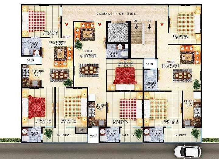 | 2.0 BHK | 800 Sq.ft. (Built Up) |