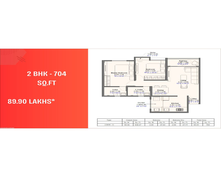 | 2.0 BHK | 704 Sq.ft. (Built Up) |