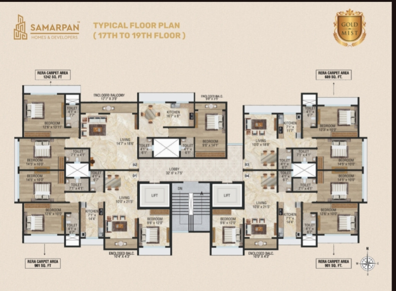 | 3.0 BHK+3T | 1242 Sq.ft. (Carpet) |