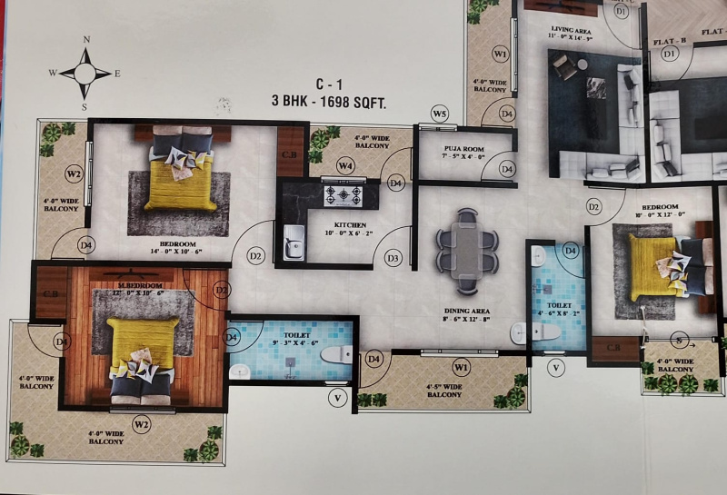 | 3.0 BHK | 1700 Sq.ft. (Built Up) |