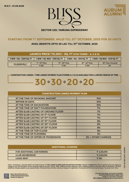 Aurum Alumni has launched two ultra-luxurious residential projects on the rapidly emerging Yamuna Expressway corridor Aurum Alumni Accord and Aurum Alumni Bliss have been designed to offer elevated living experiences, redefining comfort, space and urban convenience. A third project with an investment of INR 600 crore will be launched soon.Aurum Alumni Accord is strategically located at Jaypee Greens Sports City, Sector 25, Greater Noida, directly facing the iconic Buddh International Circuit. Spread across three acres, Accord comprises five high-rise towers, each with 21 floors. The project will feature 210 exclusive 4BHK units, all meticulously planned with just two residences per floor and three lifts in each tower, ensuring privacy and seamless accessibility. ...More