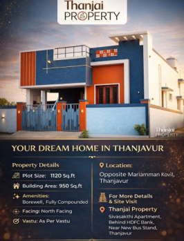 This Property 10/Years Old Individual House With 4-Shop Sale Thanjavur in Mariammankovil. Cut Road 1.5/Km Ground Floor 2/BHK First Floor. Not putting Roof 50%only Completed.South west Corner Property No Borewell Only Panchayat water available