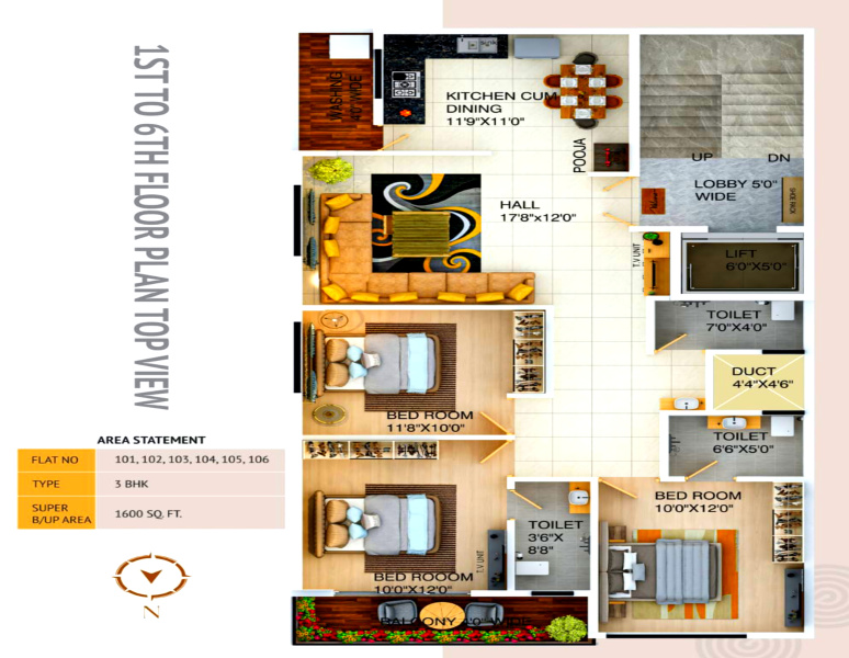 The flat is situated on the 3rd floor of a 6-story building, offering a tranquil and serene environment. The property faces towards the North direction, ensuring ample natural light and ventilation throughout the day.